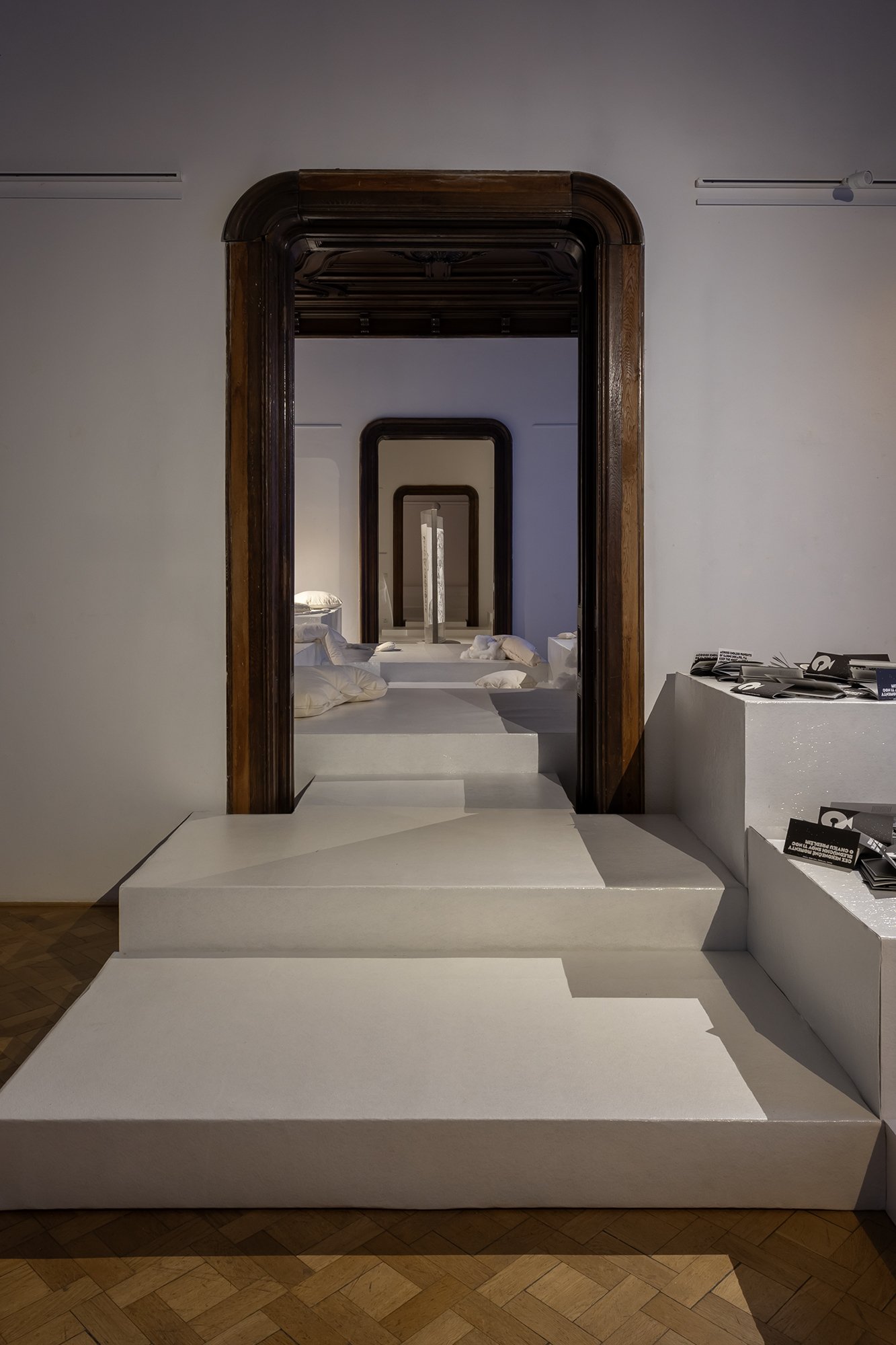 /exhibition architecture/author: Jakub Kopec/curator: Denis Kozerawski/visual identity: Matúš Buranovský/photo: Leontína Berková/Pistoriho palác, Bratislava/2024-2025